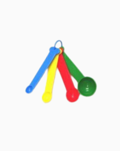 Bright colors help differentiate the 4 measuring spoons. Spoons are made of sturdy plastic that is d..
