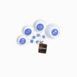 This classic set of four measuring cups is white with blue. They have large print so they are easy to read. The measuring cups consist of four measurements: 1 cup, 1/2 cup, 1/3 cup, and 1/4 cup.