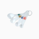 This classic set of four measuring Spoons is white with blue Easy to Read. They have large print so ..