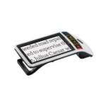 The integrated stand allows for 3 different uses: fully retracted for hand-held use, fully extended for placing on reading material and partially extended for writing under the display (0.9x – 4.6x when in writing mode). An optional handle is available to provide optimal stability and a supportive grip and an eyelet at the bottom of the magnifier allows for a lanyard to be attached so it can be worn around the neck.